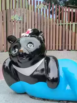 There are seven Taiwan black bears of different shapes in the Guguan Hot Spring Square, and each black bear represents the name of a mountain near the Guguan area. Although these mountains are only one or two thousand meters above sea level, they also represent the infinite natural ecology nurtured by this mountain range. Guguan was originally the residence of the Atayal people. Next to the steps of the hot spring square there is a statue of an Atayal doll as a representative. There is also a foot soaking pool in this square. Tourists who come to the hot spring square always take off their shoes and soak their feet in the pool. Although the hot spring square is not very large, you still have to come here to visit when you come to Guguan and feel the charming charm of Guguan Hot Spring. (20201118)
