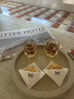 A popular check-in spot for internet celebs in Taichung, but.we love butter Hotel, with its cream-colored American-style exterior and very cute color combination, is perfect for checking in and taking photos. The store will start issuing number plates at 12:50 noon and enter in batches. You will be given an introduction at the beginning. If you have no problem listening to it, you will become a qualified employee. You can take photos and visit the first and second floors. There are tastings and biscuits for purchase in the bathing space on the third floor. This time, we are trying the Taichung limited sun cake flavor. You can go and try it. 👀