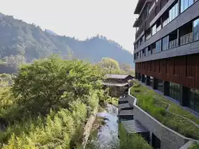 The whole hotel has a great sense of design, full of wood and natural elements. The rooms also have private hot spring pools, where you can soak in the hot springs while enjoying the mountain view, which is a great experience.
