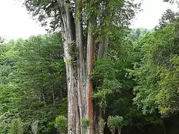 The sacred trees under the wooden plank tower into the clouds; shush~listen, that's the imperial pheasant singing