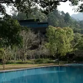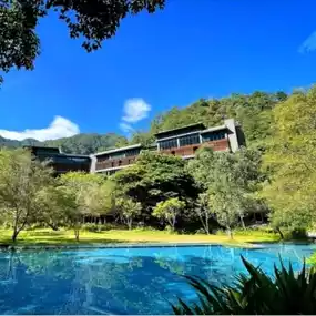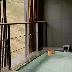As your car passes through a 50-meter bamboo tunnel, it feels like you've entered a mystical boundary! The lobby features a giant blue painting by a Japanese artist, instantly evoking a luxurious "no need to fly to Japan" vibe. To top it off, you're welcomed with chilled oolong tea served in glasses with condensation beads, perfectly complementing the misty hot spring atmosphere—absolutely refreshing!