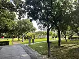 Outside the museum, a large green space stretches out, and the lawn, shade and art installations are interwoven into a quiet and vibrant picture.