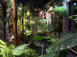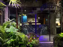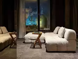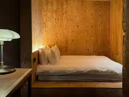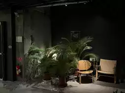 Crossing the street, you open the door and enter the first-floor lobby, where you'll be greeted by a patio and green garden. The furnishings and space planning in the room are unique, very different from ordinary hotels. The uneven chiseled walls and beams, the greenery, and the sunlight that streams in from outside enhance the space. The stay experience is full of surprises.
