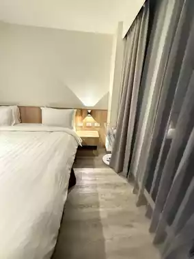 We stayed in a double room, simple and clean, with a harmonious combination of wood and white walls. Outside the window, there was no sound of traffic or people, only the occasional whisper of the forest and the wind. Opening the curtains, I was greeted by the deep silence of the night, devoid of any unnecessary light. Instead, I looked forward to the misty Fushoushan air of the next morning—the scent of the mountains, the breath of the swaying vegetation, the pure baptism of high altitude.