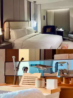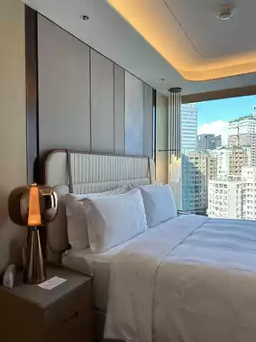 The Midtown Suite offers a spacious layout with separate living and sleeping areas. It features a large sofa zone, a work desk, plush bedding, and a spacious bathroom, making it ideal for both relaxation and work. The clean city view from the window is perfect for photography.✨