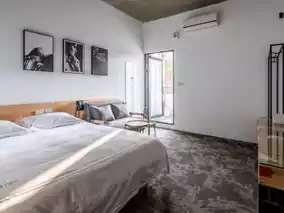 The rooms are brighter than expected, with stylish lighting fixtures and a clean, comfortable bathroom. Interestingly, the bathroom is located on the balcony rather than inside the room, offering excellent ventilation and natural light.