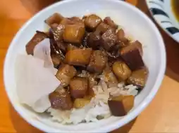 The duck blood is delicious, the braised pork rice is rich, and the sesame oil soup is delicious.