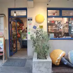 Because there are several moai sculptures with large puff hats at the door, the shape is funny and cute, and even customers can bring puffs together to take pictures, very cute 💗!