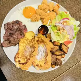 Burger Joint 7 Points SO American Kitchen has four locations in Taichung, but I've never had the chance to try their authentic American fare. Today, I'll take you on a tour. They offer affordable burgers, burgers, steaks, and more, and they also have brunch. All meals are served all day, and the portions are generous. It's no wonder their business is so booming. Today, I ordered the Kansas Tornado Beef Burger and the New York Queens Brunch, both of which were upgraded to set meals, and added ice cream tea and a hot Earl Grey. The staff are very attentive, always checking in with each table to see if they need any help. They also ask if the flavors are working for you or if you need any adjustments. They're very considerate. Highly recommended!