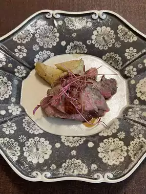 The warm dishes, like grilled sashimi or low-temperature-aged meat, had a thin, crispy exterior and a soft core. The garnish was made with chopped grains and seasonal vegetables, which lacked texture. The sauce was minimal, serving only as a gentle guide.