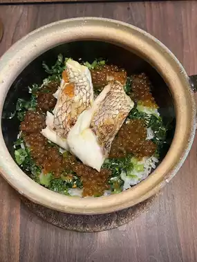 As soon as the lid of the small earthenware pot was opened, the aroma of rice hit the table first. Thick-cut fish belly and salmon roe were layered on top. Even after mixing, the rice grains retained their distinct texture, and the salty aroma and seafood flavors slowly wafted upwards—this pot of rice was the star of the night, making it a must-eat. (The rice is cooked and mixed according to the Niigata style, a fact that was specifically mentioned in the Michelin guide.)