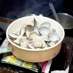 The clams mentioned are actually sand white mussels fresh enough to order! We chose the creamy garlic flavor The finished product was quite large, and the mussels were plump and full of freshness.