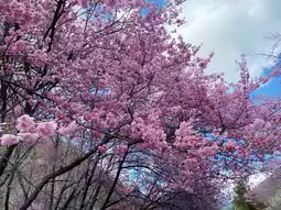The cherry blossoms here are incredibly dense, featuring varieties like Showa Sakura, Pink Lady, and Mountain Cherry Blossoms.