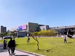 Upon entering the National Taiwan Museum of Fine Arts in Taichung, one is greeted by a wondrous spectacle of art beneath a blue sky—a giant bubble ball floating on the grass, shimmering with a rainbow halo as the sunlight shifts, making one feel as if they've stepped into a dreamlike artistic realm.