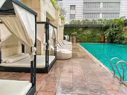 There is a swimming pool, gym and sauna here.