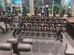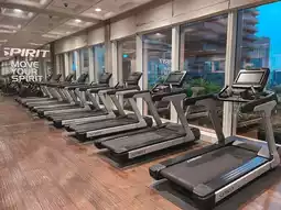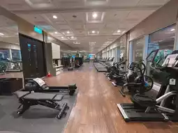 There are plenty of aerobic and weight training equipment, and it's not too crowded.
