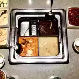 Features: Four-grid hot pot, diverse dishes, rich condiments