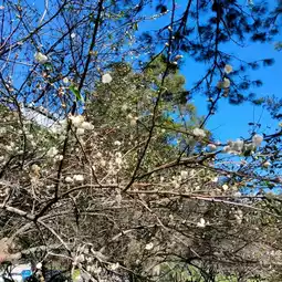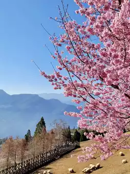 Wuling Farm is bustling in December, with not only crimson maple leaves but also pure white plum blossoms. Inside the visitor center, there's a shop selling hot meals and instant noodles, and free hot water is available outside.