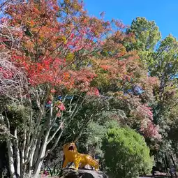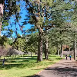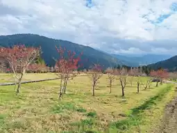 If you'd like to bring food, you can walk into the cherry blossom grove and enjoy a meal at a wooden table in the sun. While there aren't any cherry blossoms at this time of year, it's still beautiful.