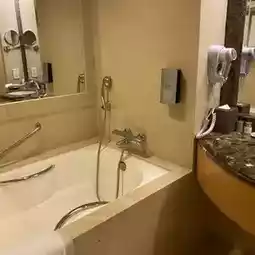 The room is quite big, but because it is an old hotel, the equipment in the room is a bit old. The bathroom is designed with dry and wet separation, and uses an international brand bidet. The bathtub is quite deep, and it is quite comfortable to take a bath!