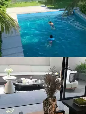 A villa with one room and one pool, right outside is Taihu Lake. A family of three can also stay in a lake-view villa at 83.ยฉ