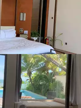 Here, each villa has a lake-view king-size bed. The room is 140 square meters, very spacious~