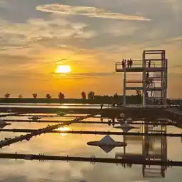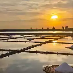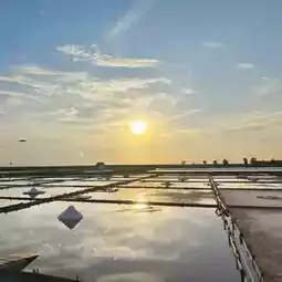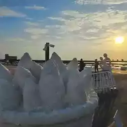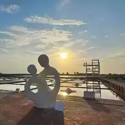 The soil here contains too much salt, so trees cannot grow there; they must dig deep and add fresh water for irrigation in order to survive. During the Art Carnival, there are also some salt sculptures on display, such as "Eternal Love", "Salt Crystal Cathedral", "Good Harvest" and so on. On the way back, we also saw the beautiful sunset in the west, and at the same time, the moon rose in the east, and a group of egrets resting in the fields. It was a unique sight that was definitely worth a visit!