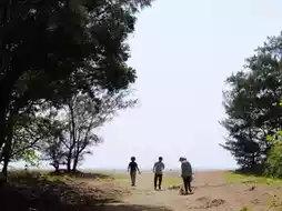Walking along the boardwalk, you'll quickly reach Yuguang Island Beach. There's a large open area with trees providing shade and a view of the sea, making it a great spot for a picnic.
