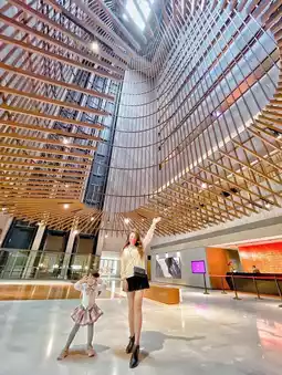The hotel lobby is very grand, with the atrium reaching the highest point.