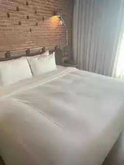 The "Friendly Room with One King Bed" we stayed in this time is located on a high floor. The overall space is interwoven with red bricks, wood and dark green tones, creating a warm yet modern retro style. Natural light fills the interior, and paired with textured furniture and selections, every corner makes you want to stay a little longer.
