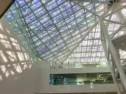 The two buildings of the Tainan Art Museum feature distinct architectural styles. The first building, converted from an old police station, boasts vintage staircases, beams, and arches. The second building, with its pentagonal glass roof and minimalist white design, is visually stunning. Sunlight streaming through the glass creates captivating light and shadow effects.