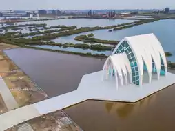 Originally a salt worker’s washing station, Beimen was transformed into the Crystal Church in 2014 as part of the visitor center. Its white steel structure symbolizes salt piles, while the glass curtain walls refract light and water ripples, echoing the imagery of the local salt village. Inspired by designs from Guam and other crystal churches, it appears as a dreamy chapel floating amidst the salt fields.