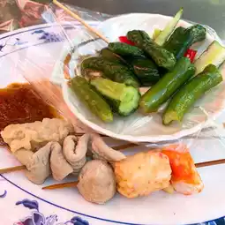 Crispy toast with chicken, seafood, vegetable stew, and other local delicacies!