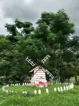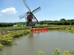 Deyuanpi Holland Village, located in Liuying District, Tainan City, is a leisure and tourist attraction steeped in Dutch charm. The village boasts numerous installations, each featuring Dutch elements such as windmills, tulips, wooden clogs, and cows. Spanning approximately 7.9 hectares, the park boasts a rich wetland ecosystem and ponds. Its rustic rural landscape, characterized by arched bridges, barn buildings, a ferry boat, and Dutch windmills lining the riverbank, is a hallmark of the village. Next to the village is the Old Cow's Home, a final resting place for aged cattle no longer able to work. Camping is also available within the village. The annual Windmill Festival draws crowds, and other events such as concerts and beer festivals are also held there. This is also a great place for children to take a walk. Children can run and play on the grass, learn about foreign things and wetland ecological education, and it is a multifunctional rest area that combines education and entertainment.