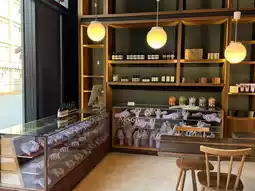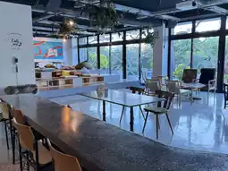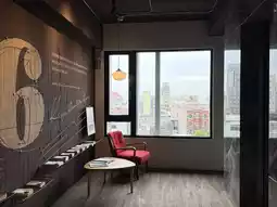 The lobby on the first floor has a high ceiling and a stylish design. There's a café where you can grab a coffee, relax, or browse the bookshelves. The hotel's exterior is also very stylish, making it beautiful for photos both day and night. Across from the hotel is the Yu-Ai Market, which offers breakfast, coffee, and a traditional market in the morning, and is also a great place for dinner or late-night snacks.