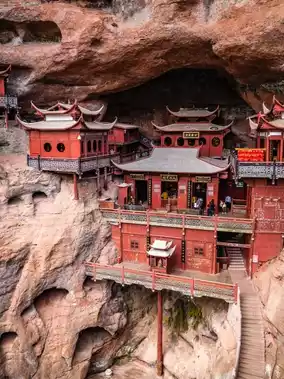 Tucked away amidst the precipitous cliffs lies a Song Dynasty temple, its pillars planted in the ground without a single tile. 🏯