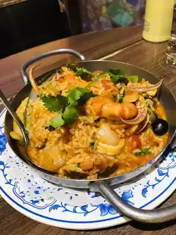 During this visit to Taipa, indulging in authentic Portuguese flavors was a must! Their signature curry chicken bread 🥯 is rich and flavorful, with tender chicken and bread soaked in the essence of the curry. The stir-fried greens 🥬 are simple yet delicious, bursting with wok hei, while the fresh salad 🥒🍋 provides a refreshing balance to the rich main dishes. The biggest surprise was the Portuguese seafood fried rice 🍚, packed with fresh shrimp 🦐, clams, and squid 🦑, with every grain of rice infused with the savory juices—an explosion of flavor! Although the restaurant has limited seating 🤨, the lively atmosphere adds a cozy touch, making you feel like you're dining in a small Lisbon eatery. If you're craving authentic Portuguese cuisine, this place is highly recommended! 👍👍👍 Be sure to book a table 🤨 as waiting times during peak hours can be up to an hour 🧐.