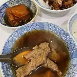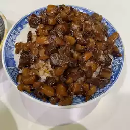 The most famous dish in the store is the braised pork rice. The meat is cooked to a caramel color which is very attractive, and it is also known as the black gold braised pork rice. Not only does it not feel greasy when eaten, but when paired with rice with distinct grains, it makes people want to eat it again and again. The photo shows a large bowl of braised pork rice, and the small portion of braised tofu is also well-flavored and tender inside.