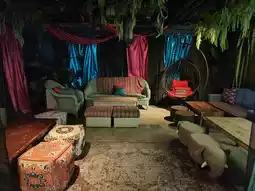Opens at 7pm and more people come as night falls.