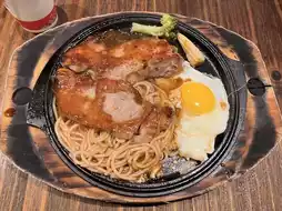 Top sirloin 16oz - steak 16oz really face-sized pieces, and served with omelette, potatoes and pasta and then on an iron plate, pasta sautéed with nutmeg, steak soft.