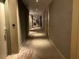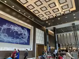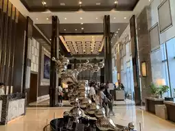 The lobby is spacious and the ceiling is quite high