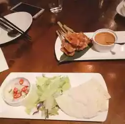 There are six grilled chicken skewers for NT$290. The meat is tender and worth ordering. It is served with pickled vegetables and radish wrapped in a pancake skin.