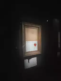 The paper shredding device hidden in the frame is activated by Banksy