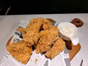 We ordered the original golden fried chicken for NT299 (half chicken). If you want to choose other flavors such as cheese, honey garlic, secret, spicy, and Korean sweet sauce, it will cost NT349, a difference of NT50. The taste and texture are very similar to Fat Daddy's, and pickled white radish is served on the side to relieve the greasiness of the fried chicken.