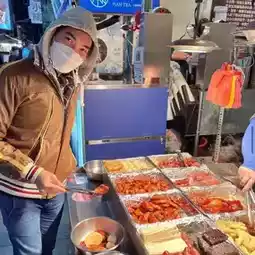 If you've been to Taipei and haven't visited Shilin Night Market, you haven't really been to Taipei. This market is open from evening until midnight. I took the MRT to Jiantan Station and immediately went out to explore the market. The atmosphere and the stalls were bustling with activity. Taiwanese people also enjoy dining out, and the crowds were bustling. I love this description of the smiling vendors, beckoning customers.