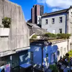 A creative corner converted from a warehouse building, a wine and cigarette factory that was abandoned for more than 10 years, developed into an art gallery, a very hip venue decorated with art, arranged in an interesting exhibition zone, a cool photo corner, a chic cafe for taking pictures happily. The back is next to a garden with big shady trees, open as an outdoor art area, a lawn, an open space for outdoor activities. The atmosphere is very good, I like it very much, lively, there are cute things for sale, there are street art performances for free.