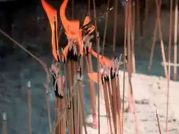 - Toss the red half-moon shaped wood, one side up and one side down, three times to receive the red thread.
