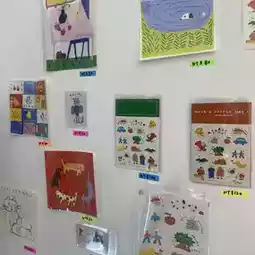 This shop is a small house in an alley. There's a small cafe area in front of the house, and inside the house they sell illustrations and handcrafts. They also have art workshops where you can take courses.