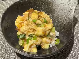 With the last bit of soup left, the waitress 👵🏼 also prepared a "Japanese rice bowl with leftover sukiyaki sauce + egg" for us, with chives 🍃🌱. The simple dish was enough for me to savor for the whole night.