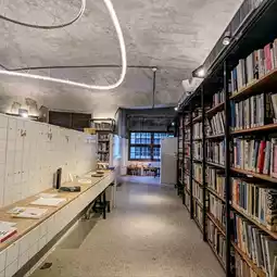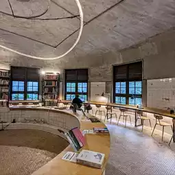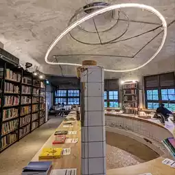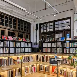 Hidden in a quiet corner of Songshan Cultural and Creative Park, this secret library was converted from an old employee bathhouse. Upon entering, visitors must change into slippers and purchase a ticket. Inside, a sunken reading area reminiscent of a bathhouse greets the eyes, with bookshelves stacked high around the space. Visitors can freely choose books and sit on the floor to read.